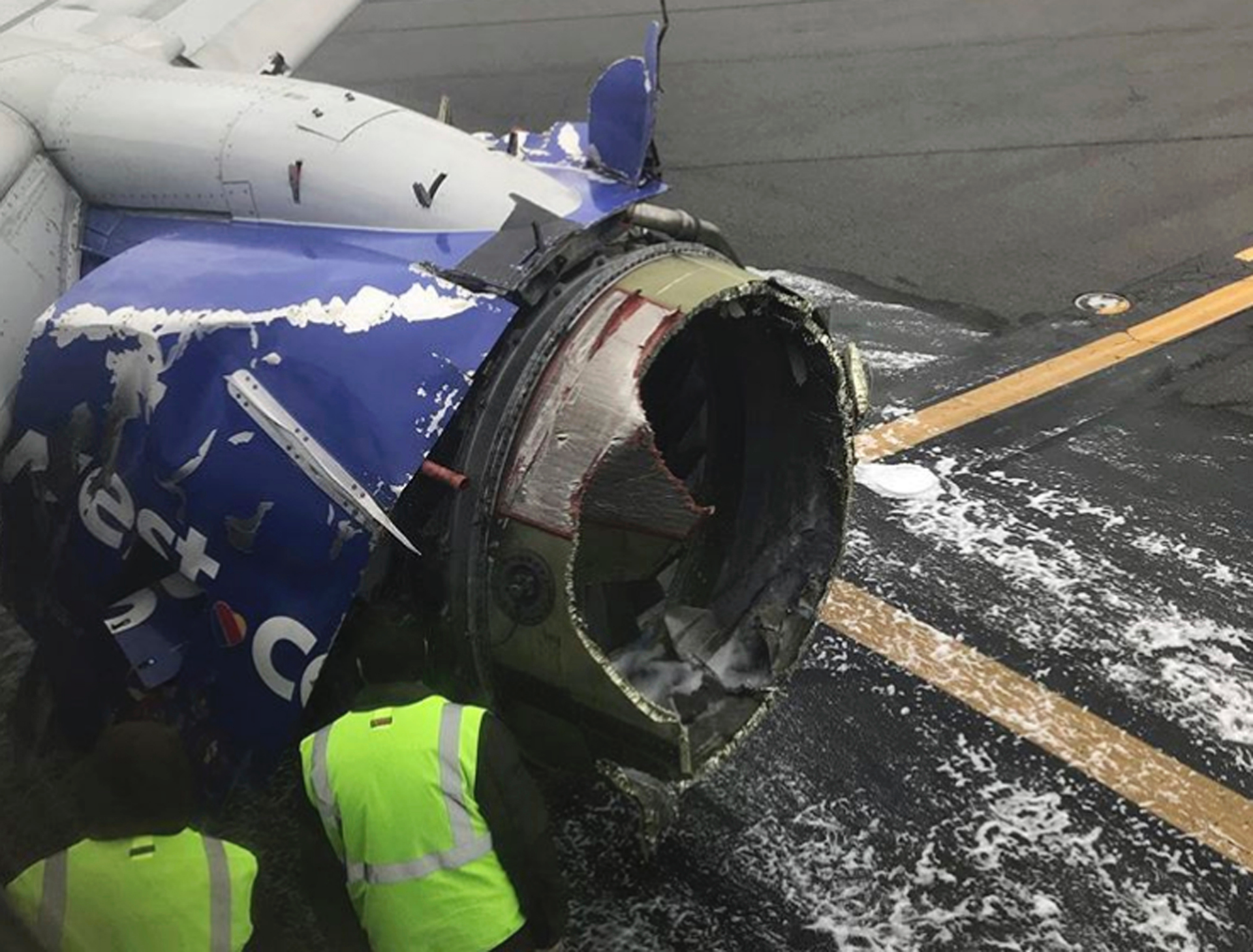 A Southwest Airlines plane made an emergency landing at Philadelphia's airport with what appears to be a damaged engine on Tuesday.